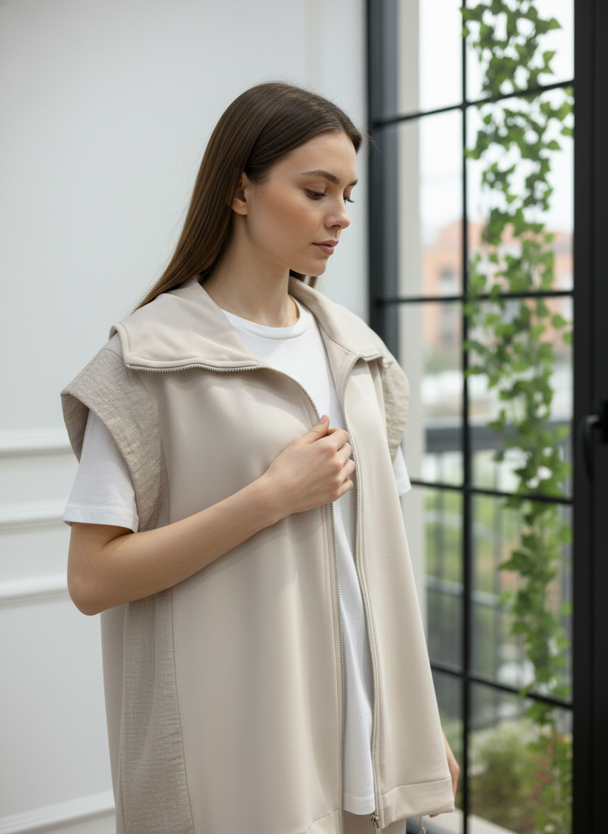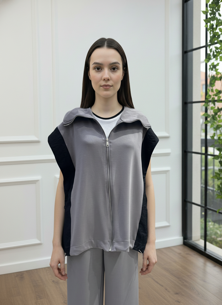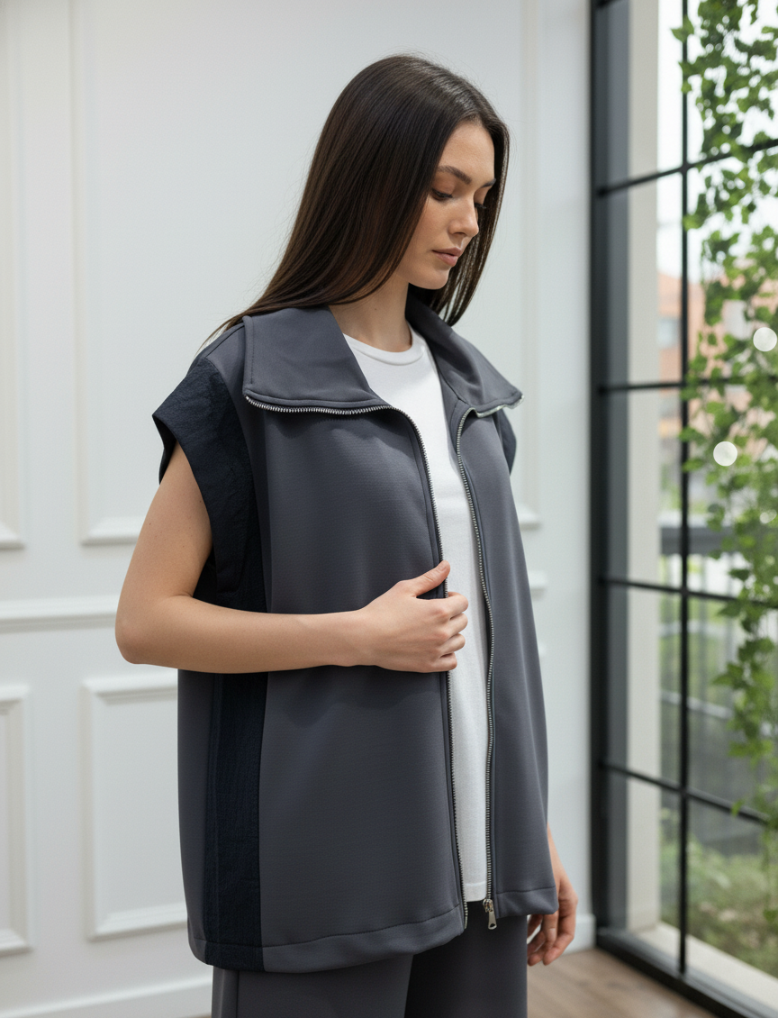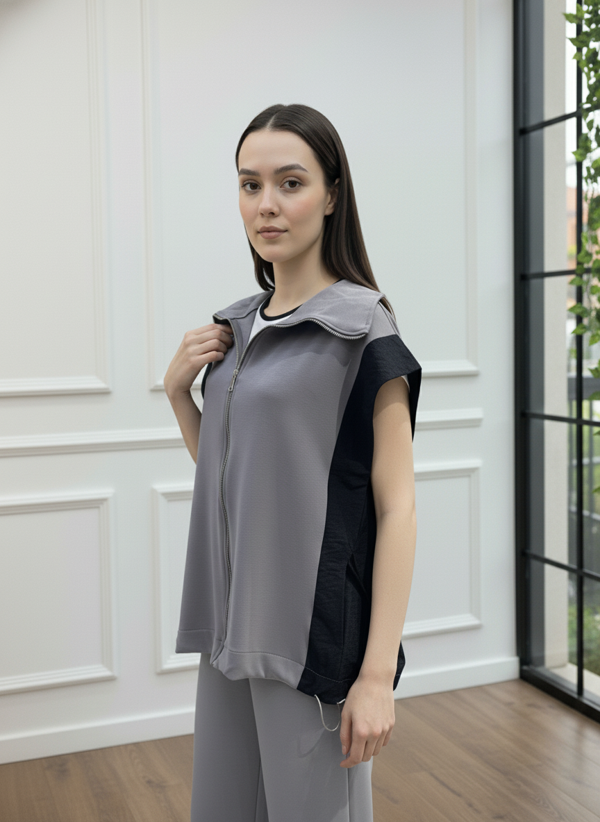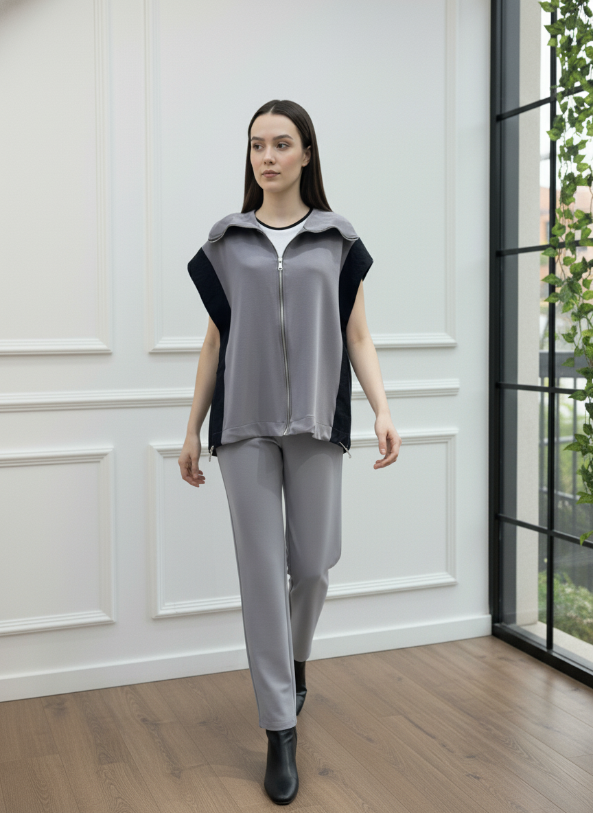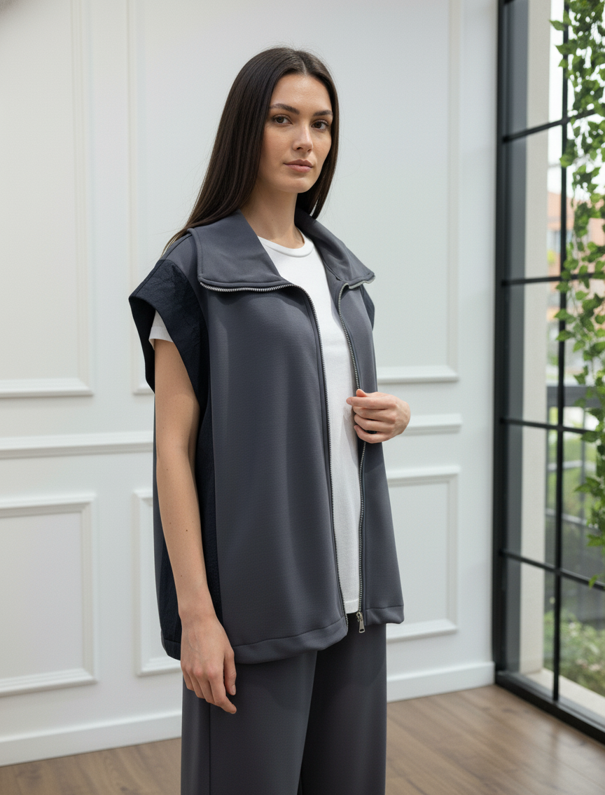 Modern ve konforlu stilin mükemmel birleşimi olan bu takım, gardırobunuzun yeni favorisi olacak. Fermuarlı ve şık dik yakalı yelek, yanlarındaki paraşüt kumaş garni detayı ile tasarıma özgün bir hava katıyor. Yüksek bel ve geniş paça kesimli pantolonu ise gün boyu maksimum konfor ve hareket özgürlüğü sunar. İster set olarak ister ayrı ayrı parçalarla kombinleyerek stilinize çok yönlülük katın. Bu takımla hem rahatlığı hem de şıklığı aynı anda yakalayın.